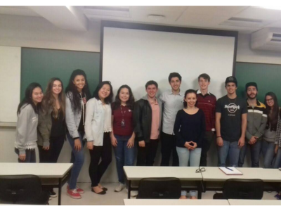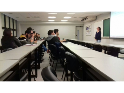 Jane Audrei ministrando curso de Google Ads para membros de Empresa Junior na FGV/SP.